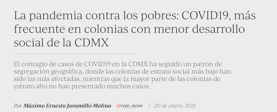 64. La pandemia contra los pobres: COVID19, más frecuente en colonias con menor desarrollo social de la CDMX (Blog)